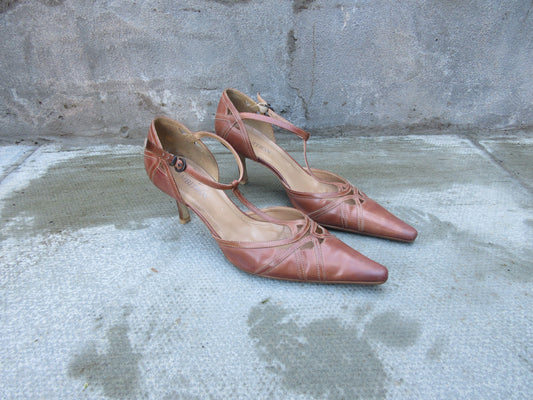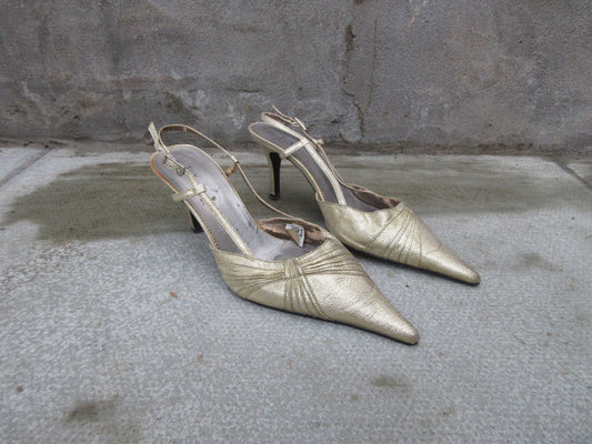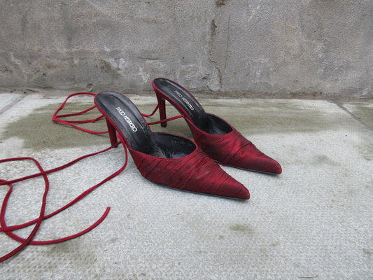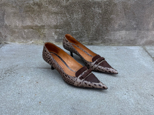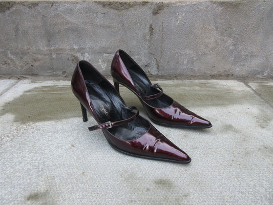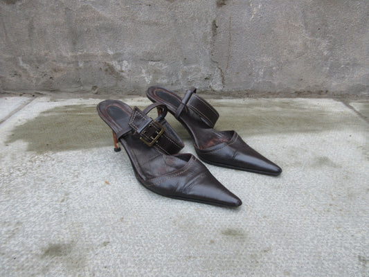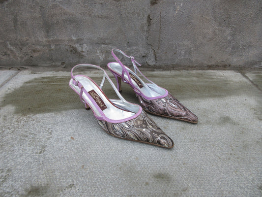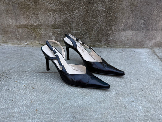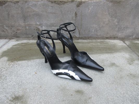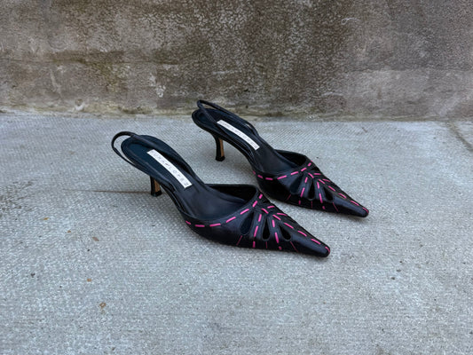 Pura Lopez Black and Pink Pointed Slingback Heels