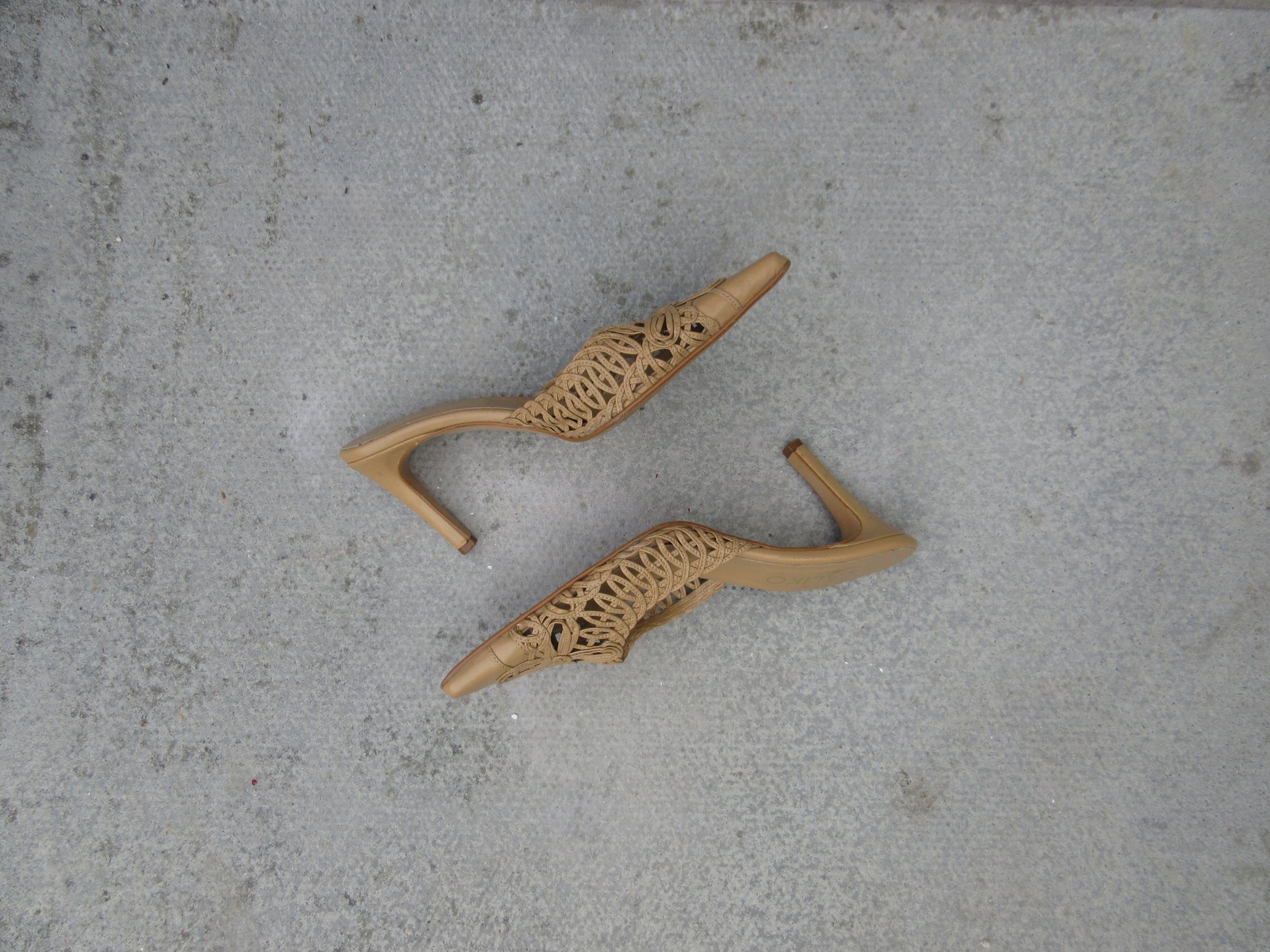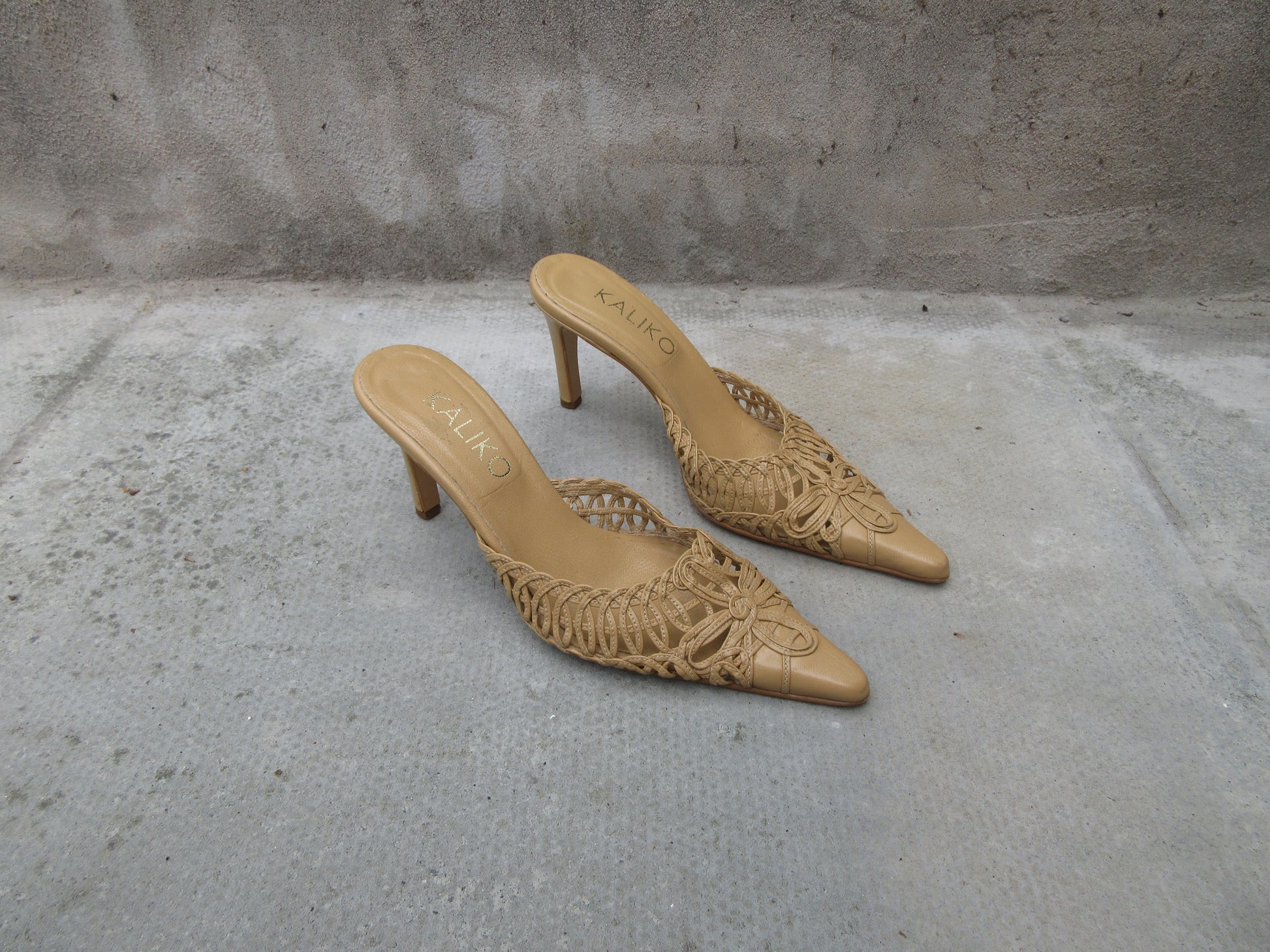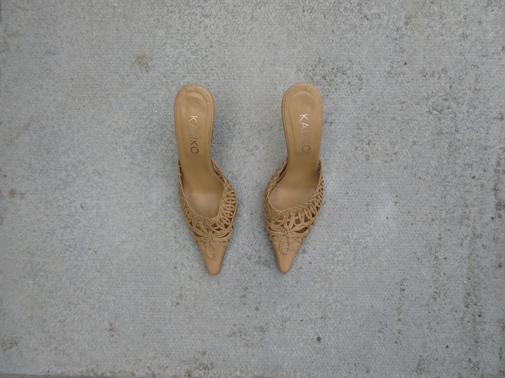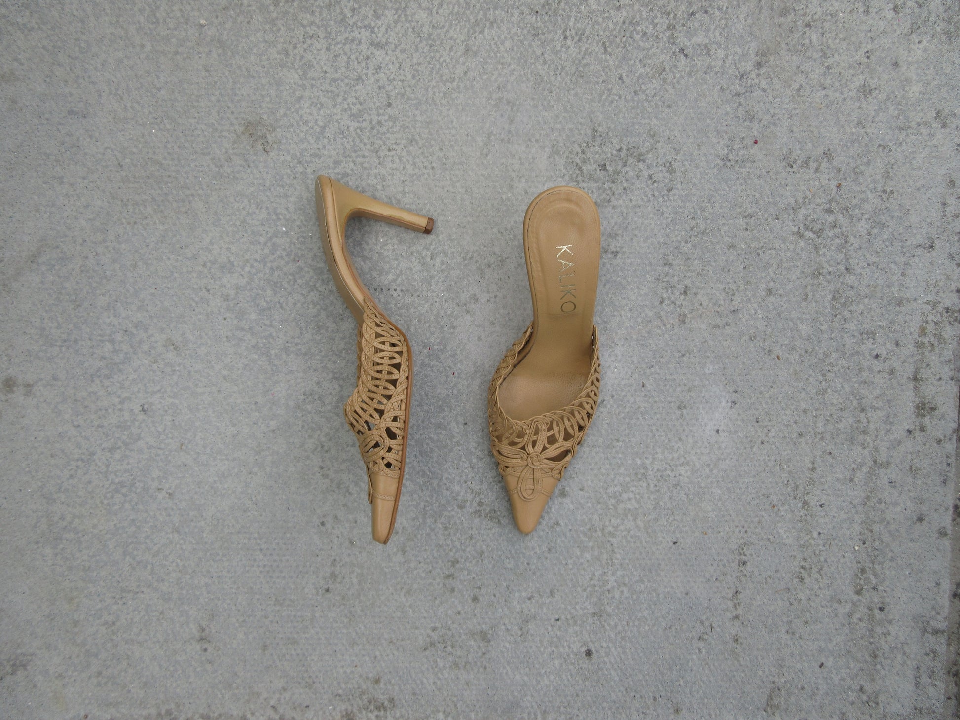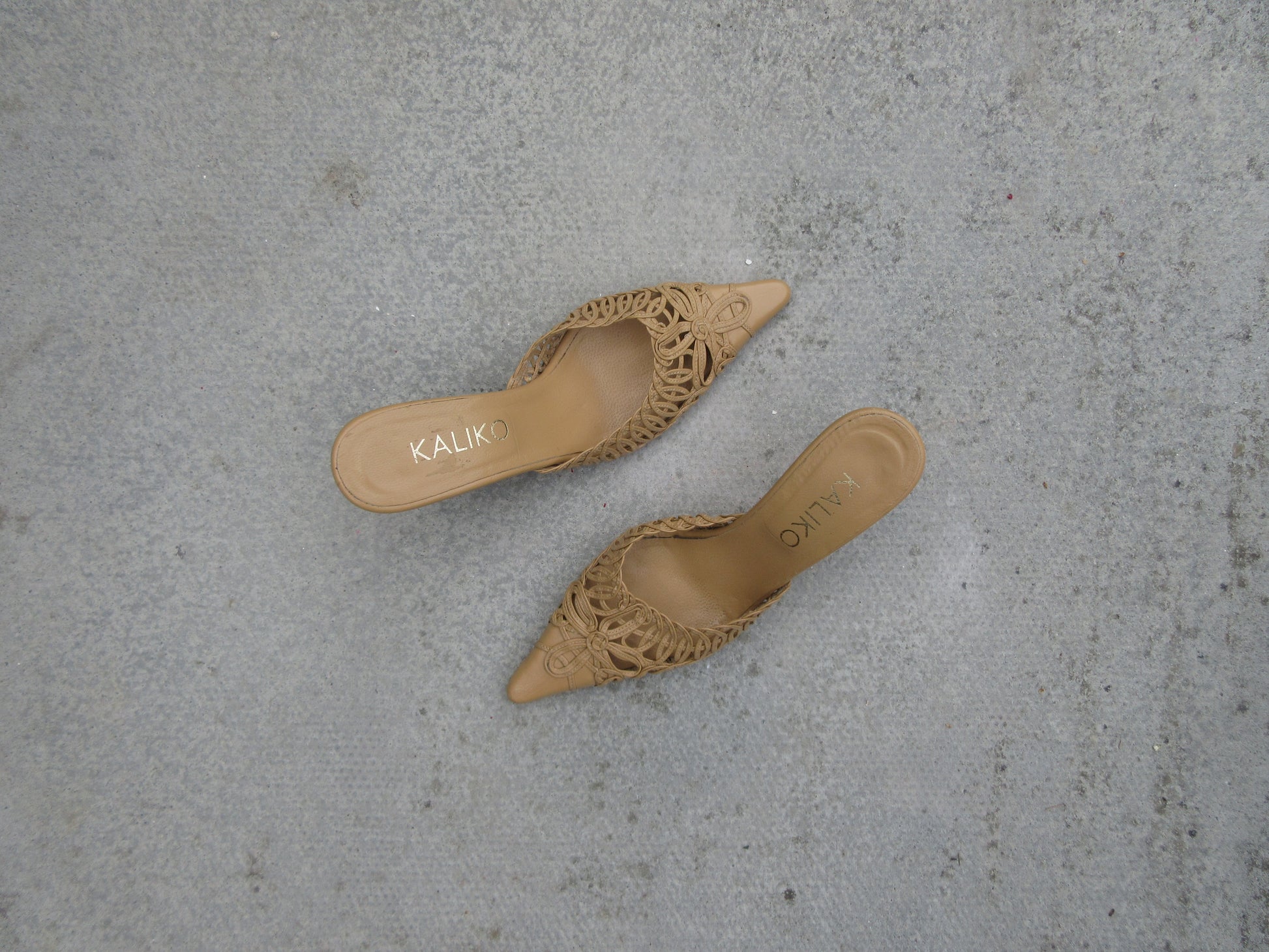Kaliko Crochet Tan Mule Heels